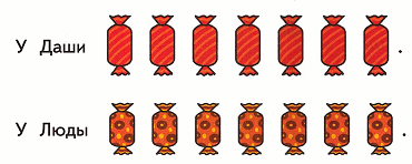 Так как число шесть на 2 единицы меньше, чем число восемь, то это значит, что у Даши стало на 2 конфеты меньше, чем у Люды.