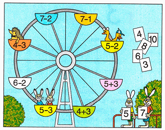 Так как 5 – 3 = 2, значит, в кабине с номером 2 сидят два зайчика.