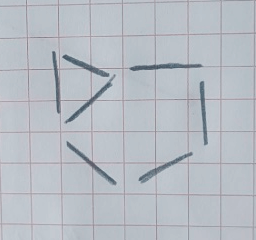 Краткое условие: Покажи, как можно с помощью 7 счётных палочек выложить 1 пятиугольник и 1 треугольник.