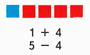 Пять квадратов без четырех красных квадратов – это 1 квадрат.