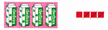 Краткое условие: Витя принёс 4 пакета кефира. За день выпили 3 пакета кефира. Сколько пакетов кефира осталось?