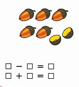 Семь желудей без двух шляпок – останется 5 желудей со шляпками.