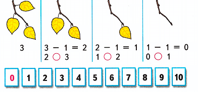На ветке был 1 берёзовый листочек, потом один упал. На ветке не осталось ни одного берёзового листочка. Значит, на ветке стало 0 листочков. 0 меньше, чем 1.