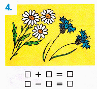 К трём ромашкам прибавить два василька – всего получится 5 цветков.