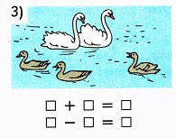 Задача: В озере плавали 2 взрослых лебедя и 3 маленьких лебедей. Сколько всего птиц плавало в озере?