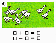 Задача: На лужайке было 8 гусей, 2 из них ушли. Сколько всего гусей осталось?