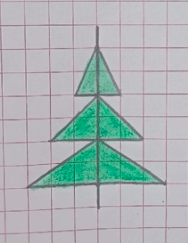 2) Нарисуем в тетради такую же елочку и добавим вторую половину: