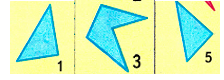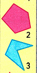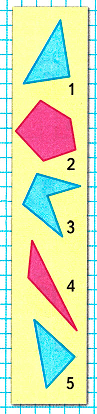 2. Фигуры можно разделить по количеству углов. В первую группу войдут треугольники, а во вторую – пятиугольники.