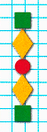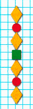Узор строится по следующему правилу: оранжевый ромб, красный круг, оранжевый ромб, зелёный квадрат. Узор заканчивается вторым оранжевым ромбом.