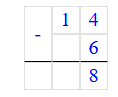 2. Вычитаю единицы. Разность чисел 8 и 6 равняется 2. Пишу 2 под единицами.