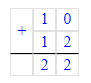 10 + 12 = 22;