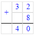 3. Складываю десятки. Сумма чисел 3 и 2 равняется 5. Пишу 5 под десятками.
