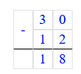 30 - (6 + 6) = 30 - 12 = 18;