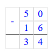 50 - (8 + 8) = 50 - 16 = 34;