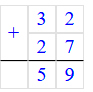 1) 32 + 27 = 59;