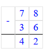 2) 78 – 36 = 42;