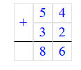 3) 54 + 32 = 86;