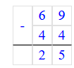 4) 69 – 44 = 25;