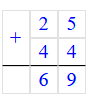 Проверка: 25 + 44 = 69;