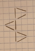 Краткое условие: Из 9 палочек сложили такую фигуру. Переложи 2 палочки так, чтобы получилось 3 треугольника.