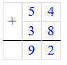 54 + 38 = 92;