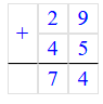 29 + 45 = 74;