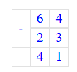 64 – 23 = 41;