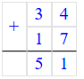 34 + 17 = 51;