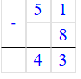 51 – 43 = 8;