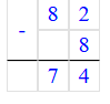 3. 82 – 8 = 74;