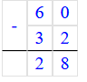 60 - 32 = 28;