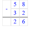 58 – 32 = 26;
