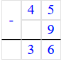 Проверка: 45 – 36 = 9;