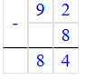 Проверка: 92 – 84 = 8;