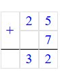 3. Складываю десятки. Сумма чисел 5 и 2 равняется 7, а сумма чисел 7 и 1 равняется 8. Пишу 8 под десятками.