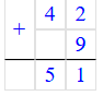 3) 42 + 9 = 51;