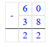 4) 60 – 38 = 22;