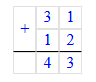 2. 31 + 12 = 43;