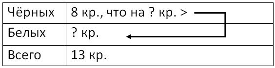 Краткое условие: У хозяина было 13 кроликов: 8 чёрных, а остальные белые. На сколько больше было чёрных кроликов, чем белых?