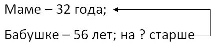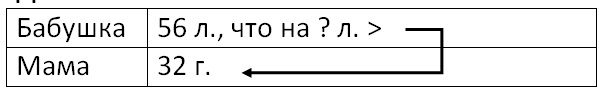 Краткое условие: Маме 32 года, а бабушке 56 лет. На сколько лет бабушка старше мамы?