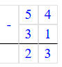 3. Вычитаю десятки. Разность чисел 5 и 3 равняется 2. Пишу 2 под десятками.