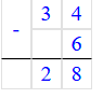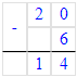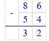 2. Вычитаю единицы. Разность чисел 6 и 4 равняется 2. Пишу 2 под единицами.