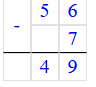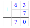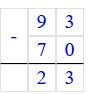 3. Вычитаю десятки. Разность чисел 9 и 7 равняется 2. Пишу 2 под десятками.