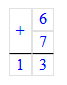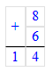 2. Складываю единицы. Сумма чисел 6 и 8 равняется 14. 14 единиц – это 1 десяток и 4 единицы. Пишу 4 под единицами, а 1 десяток запомню и прибавлю к десяткам.