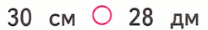 Так как 30 см = 3 дм, то 30 см < 28 дм;