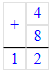 2. Складываю единицы. Сумма чисел 2 и 8 равняется 10. 10 единиц – это 1 десяток и 0 единиц. Пишу 0 под единицами, а 1 десяток запомню и прибавлю к десяткам.