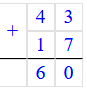 Читаю ответ: разность чисел 60 и 17 равна 43.