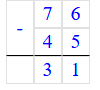 Читаю ответ: разность чисел 76 и 45 равна 31.