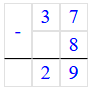 3. Вычитаю десятки. Разность чисел 7 и 4 равняется 3. Пишу 3 под десятками.м 4. Читаю ответ: 31.