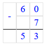 2. Вычитаю единицы. Из 0 нельзя вычесть 7. Беру 1 десяток из 6 десятков. 1 десяток – это 10 единиц. Разность чисел 10 и 7 равняется 3. Пишу 3 под единицами.